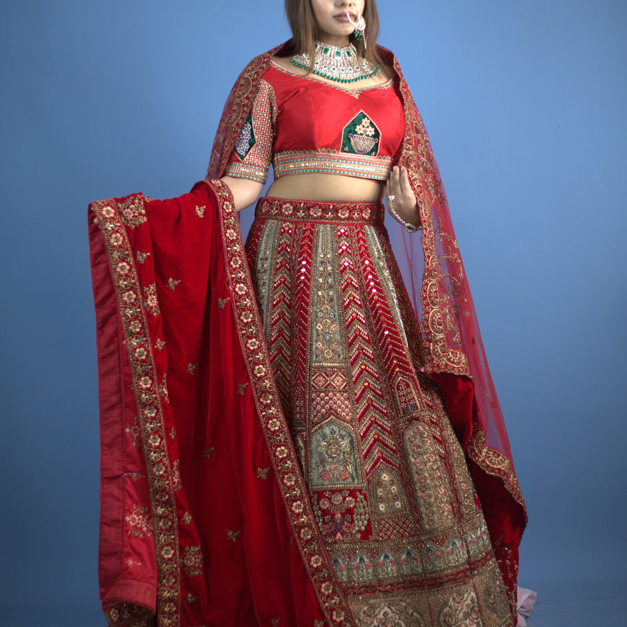 Immerse yourself in timeless elegance with our handmade Red Lehenga at aniq house. Crafted from 100% pure materials, this exquisite piece features intricate thread embroidery that showcases unparalleled craftsmanship. Perfect for special occasions, the vibrant red color adds a touch of sophistication and tradition to your wardrobe. At aniq house, we pride ourselves on delivering exceptional quality and authentic designs that celebrate our cultural heritage. Elevate your style with the impeccable beauty of our Red Lehenga, where tradition meets contemporary fashion.